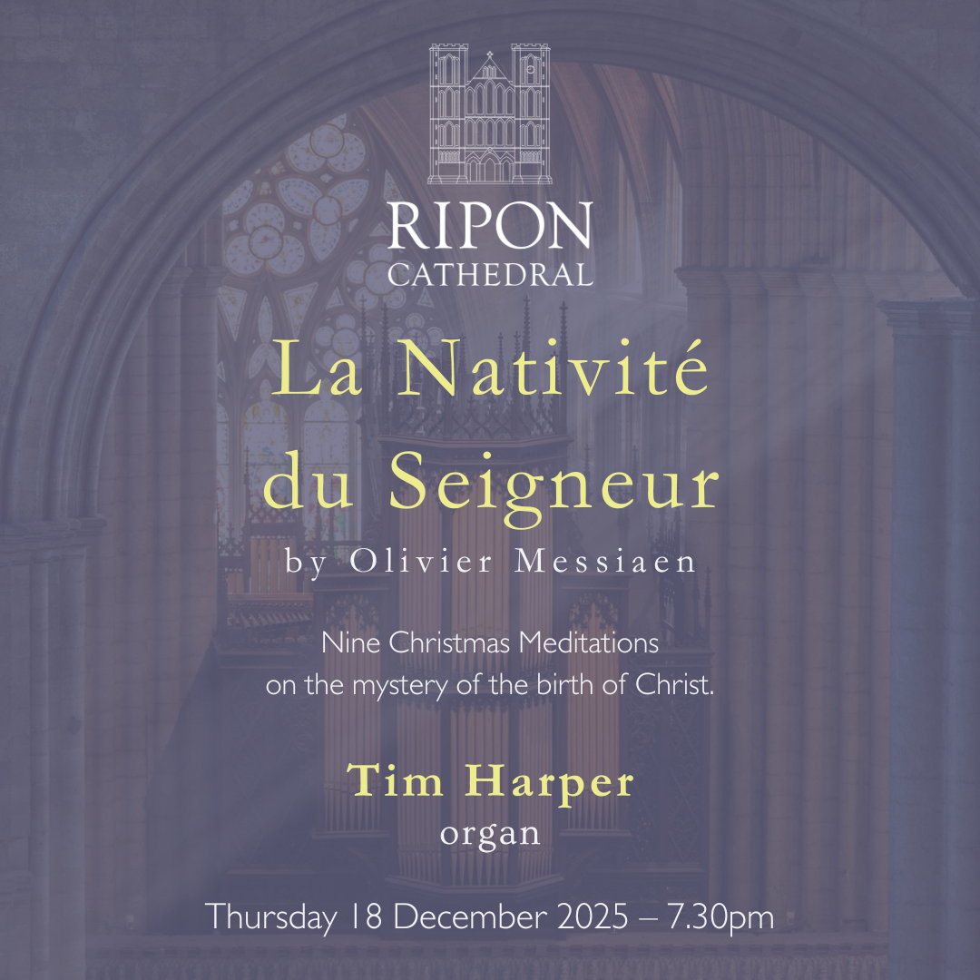 Experience the beauty of Advent through an organ meditation at Ripon Cathedral. This event features Organ Works on La Nativité du Seigneur by Olivier Messiaen (1908-1992), performed by the talented Tim Harper.