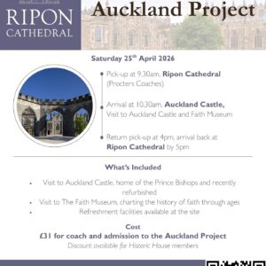 Pick-up at 9.30am, Ripon Cathedral (Procters Coaches) Arrival at 10.30am, Auckland Castle, Visit to Auckland Castle and Faith Museum Return pick-up at 4pm, arrival back at Ripon Cathedral by 5pm What’s Included Visit to Auckland Castle, home of the Prince Bishops and recently refurbished Visit to The Faith Museum, charting the history of faith through […]