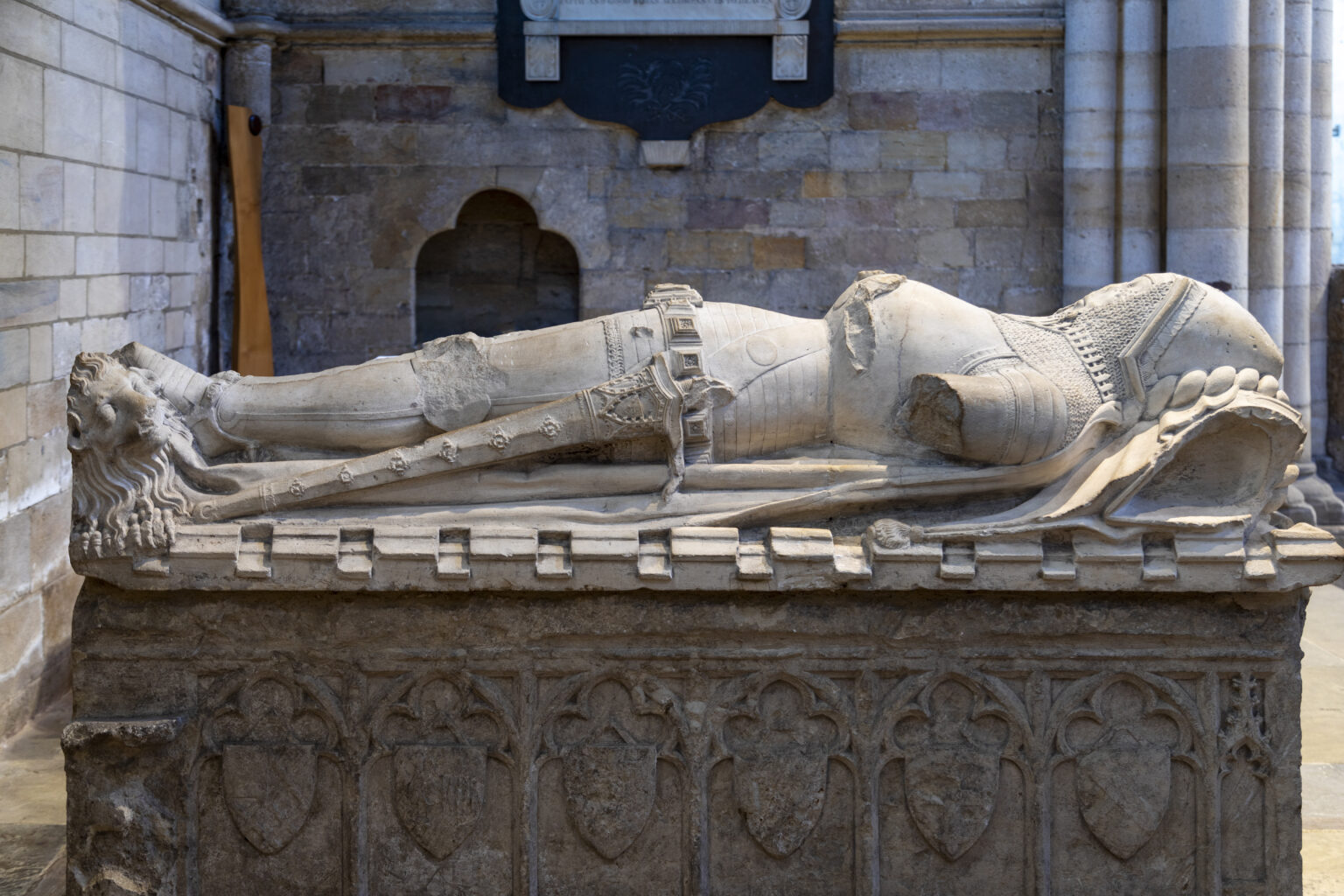 In the North Transept of Ripon Cathedral sits a pair of tombs dedicated to the once influential Markenfield family. Forgotten and degraded, the deteriorated state of the monuments serves as physical reminders of the lost lives and histories of the two men entombed within. Both memorialised men are known as Sir Thomas Markenfield, who lie alongside their wives Dionisa and Eleanor. A once noble and great family, the Markenfields have been described as influencing the most important events in Medieval England. Ranging from Bishops, clerics, soldiers, and royal confidants, their presence was felt throughout the realm. Unfortunately, this splendour did not survive the brutality of Henry VIII’s Protestant Reformations. The Markenfields’ catholic faith was extremely important to them and even in the face of the reforms they remained staunchly devoted to their beliefs. As pilgrims, holy knights and defenders of the faith, each head of the Markenfield family carried this faith within them until their ultimate demise in the 16th century. Through illuminating the two stone tombs, we will uncover the lost histories of this once mighty Yorkshire family.